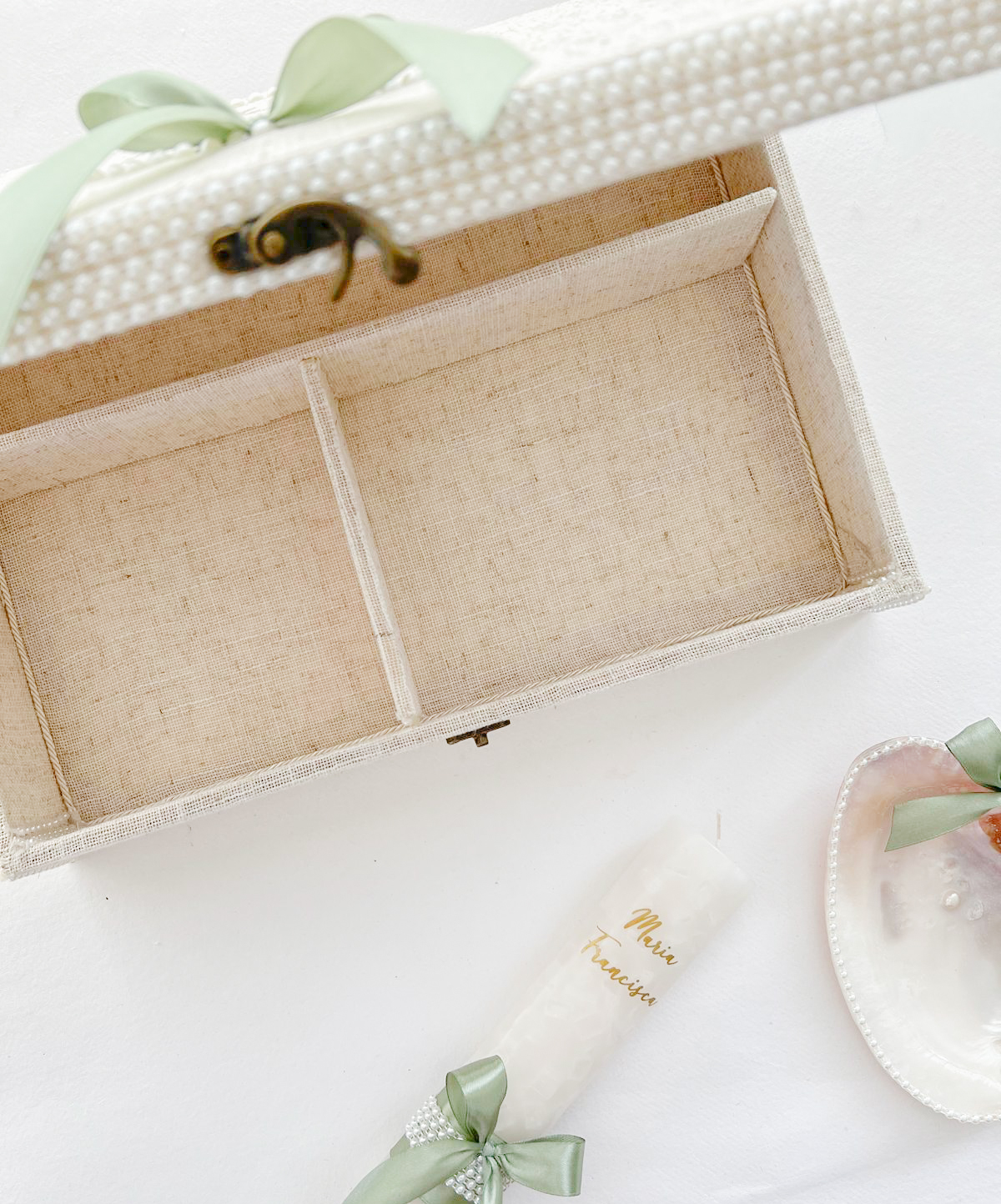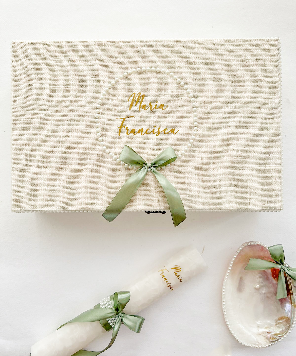 Conjunto 7 114,00 € Desconto de %. Partilhar Comprar Contactar Conjunto inclui: Caixa em madeira com personalização forrada a linho, interior com divisão para toalha, conha, vela. Toalha bordada + Concha personalizada + Vela personalizada * As cores do bordado pode ser porsonalizado. Para mais informações por favor, contacte-nos. Marca MF Eventos Tags serviçosigrejadecoraçõesbatismoconhatoalha batismovela batismobatizadoflores secas Características