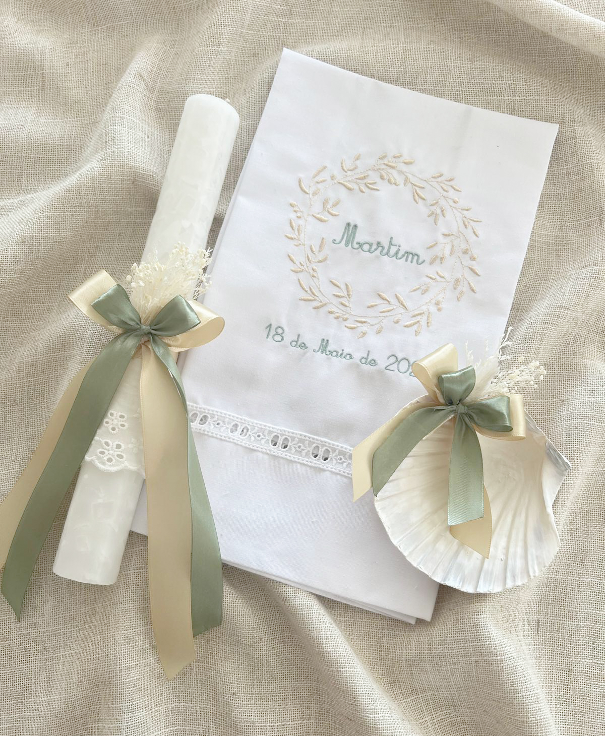 Conjunto Batismo 9 67,00 € Desconto de %. Partilhar Comprar Contactar Conjunto inclui: Toalha bordada + Concha personalizada + Vela personalizada * As cores do bordado pode ser porsonalizado. Para mais informações por favor, contacte-nos. Marca MF Eventos Tags serviçosdecoraçõesigrejaorçamentofestasWeddingnoivasbatizadobatismovela batismoconhaquintastoalha batismoflores secas Características
