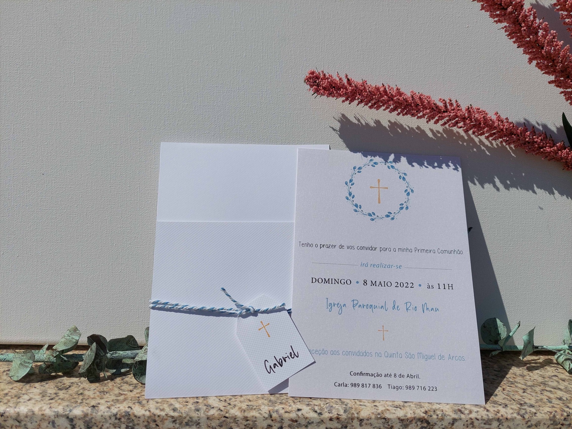 Convite Comunhão 7 2,10 € Desconto de %. Partilhar Comprar Contactar Convite personalizável. Tamanho: 17x 12cm Para mais informações por favor, contacte-nos. Tags serviçosdecoraçõesigrejaorçamentofestasCasamentoWeddingbatizadoconviteAbaixo 3€Comunhão Características