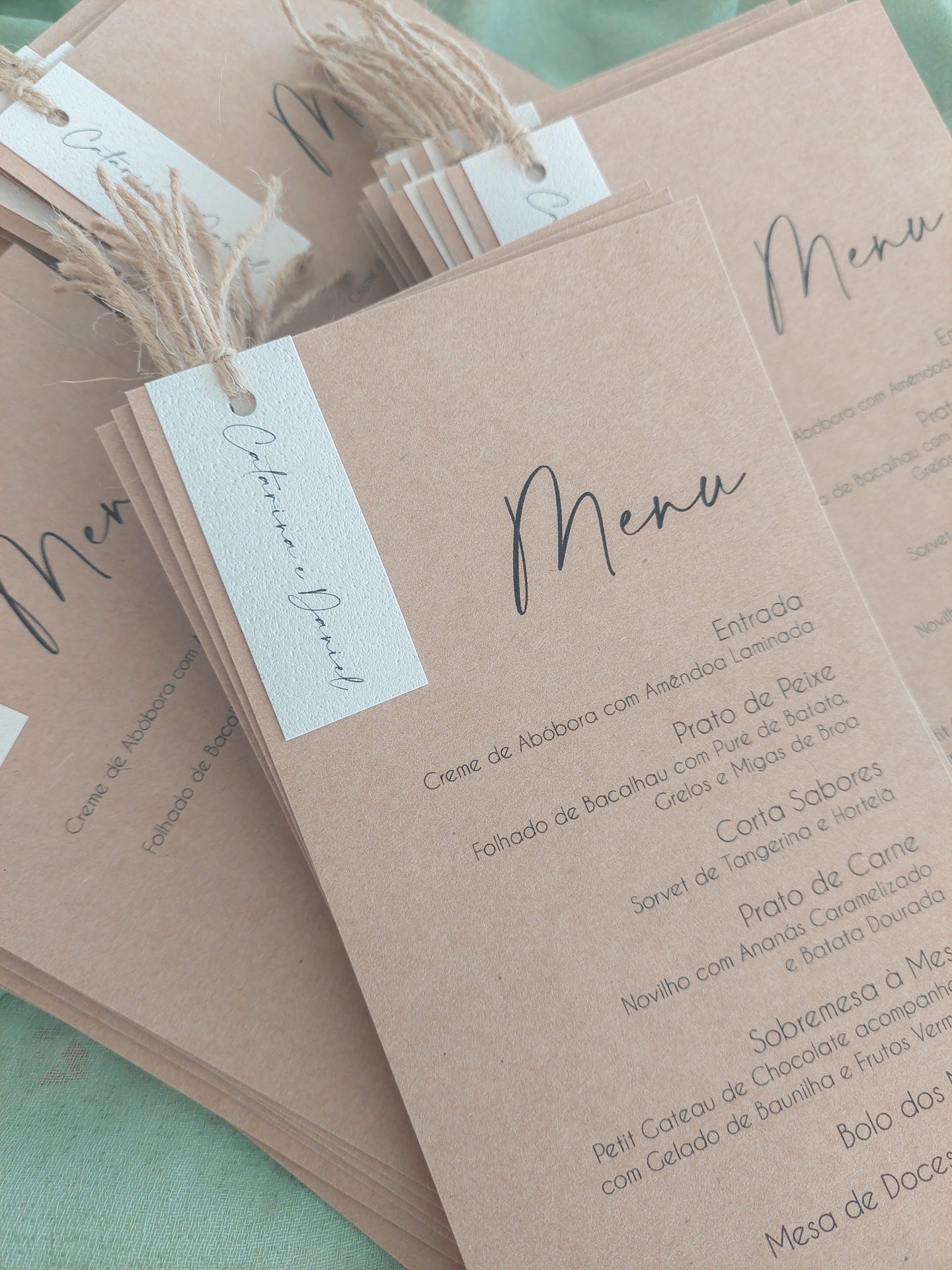 Ementa 2 1,20 € Desconto de %. Partilhar Comprar Contactar Ementa personalizável, com cartão nome noivos Tamanho:10 x 18cm Para mais informações por favor, contacte-nos. Marca MF Eventos Tags serviçosigrejadecoraçõesCasamentofestasorçamentoWeddingnoivasseating planementasquintas Características