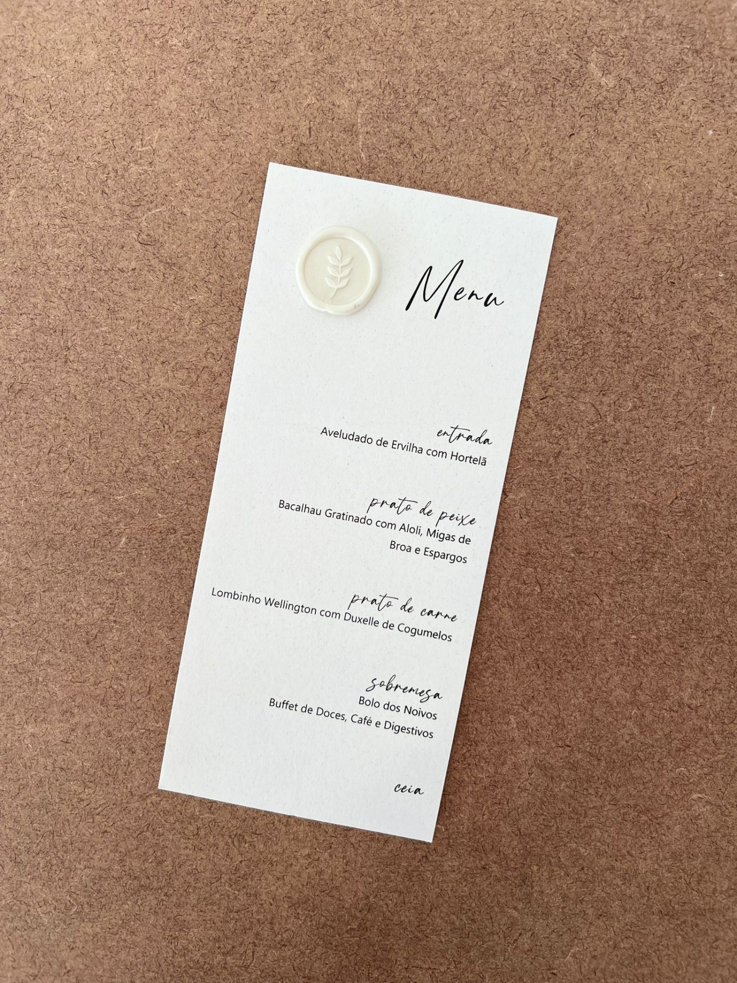 Ementa 5 1,60 € Desconto de %. Partilhar Comprar Contactar Ementa personalizável, com lacre branco. Tamanho:20 x 8.5 cm Marca MF Eventos Tags serviçosdecoraçõesigrejaorçamentofestasCasamentoWeddingnoivasAbaixo 3€seating planementasconvitelembranças