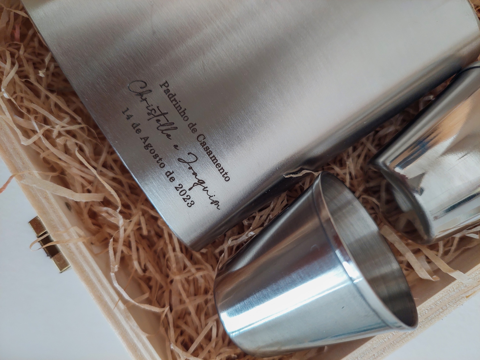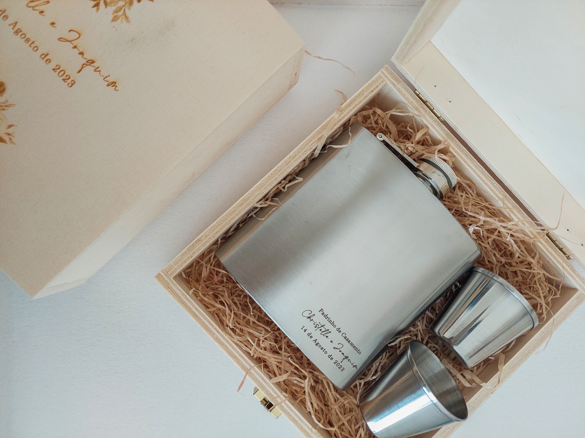 Lembrança Padrinho 30,00 € Desconto de %. Partilhar Comprar Contactar Caixa Madeira 15*15 cm, tampa gravada a laser. Com garrafa metal para whiskey gravada e 2 copos. Para mais informações por favor, contacte-nos. Marca MF Eventos Tags serviçosdecoraçõesigrejaorçamentoCasamentofestasWeddingnoivasbatismobatizadolembrançasaniversário Características