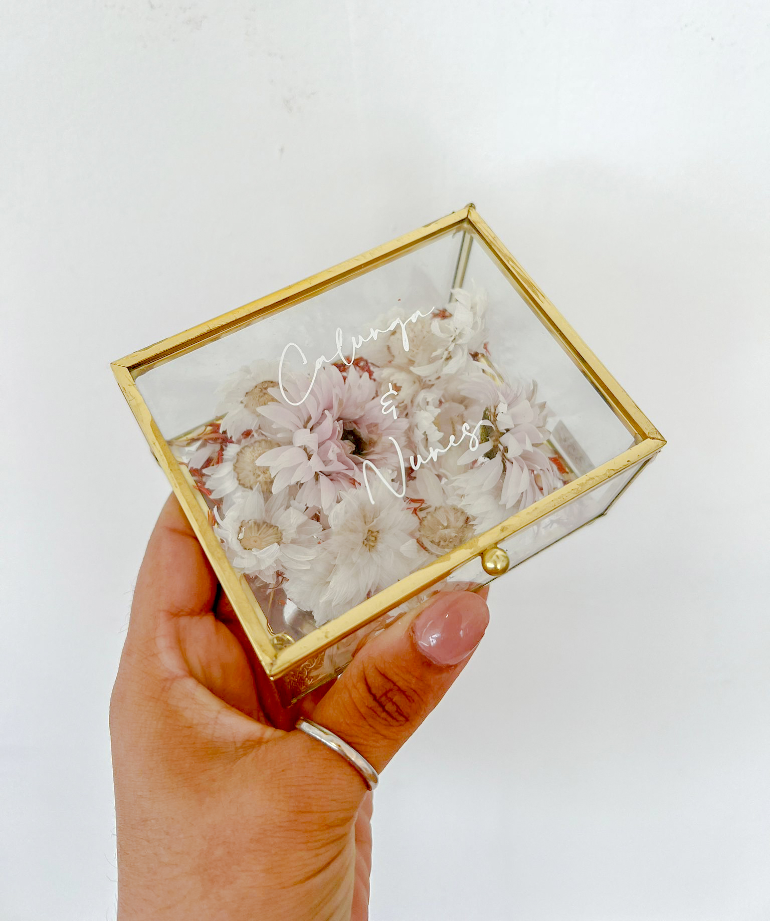Porta Alianças 5 35,00 € Desconto de %. Partilhar Comprar Contactar Caixa retangular 10*7 cm em vidro com acabamento dourado, personalizável. Inclui flores secas no fundo. Para mais informações por favor, contacte-nos. Marca MF Eventos Tags serviçosdecoraçõesigrejaorçamentoCasamentofestasWeddingnoivasporta-aliançasalianças Características